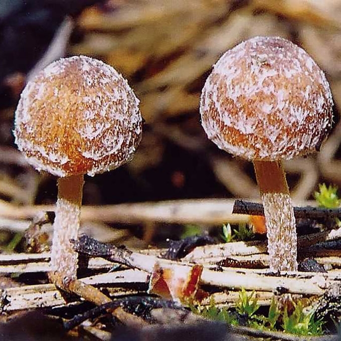 Pagr. požymiai: Jauni grybai lyg apsnigti, apšerkšniję, baltai dribsniuoti