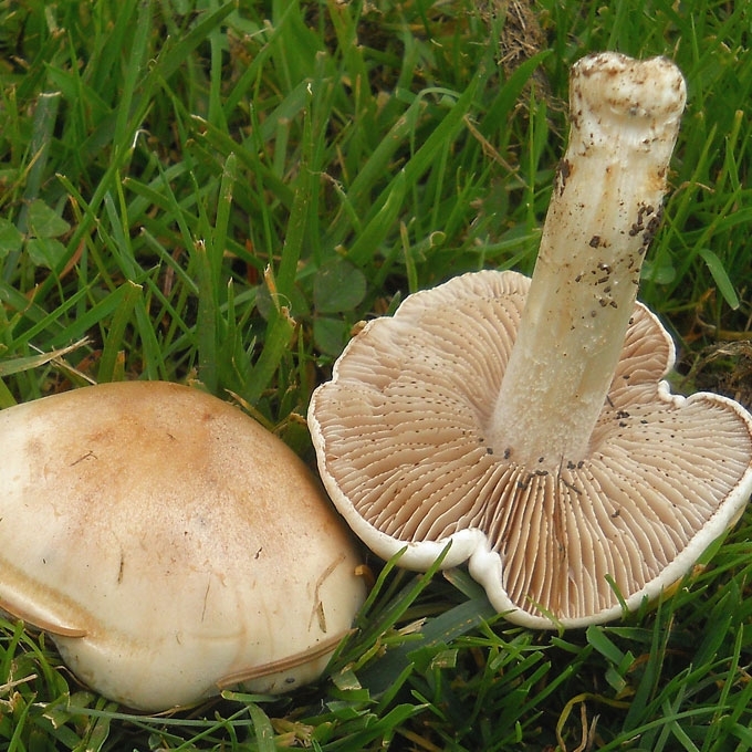 Būdingi požymiai: visada auga grupėmis, kepurėlė baltintos kavos spalvos. Nevalgoma, literatūroje nurodoma, kad nuodinga. Labai dažna.