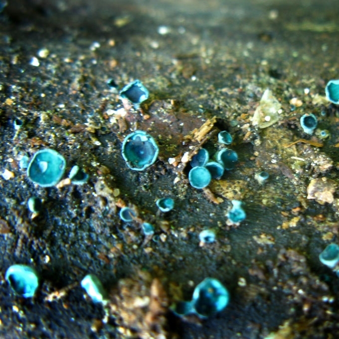Lotyniškas pavadinimas: Chlorociboria aeruginascens