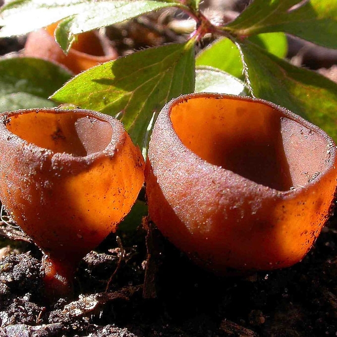 Vaisiakūniai nedideli, ilgakočiai, išaugę po keletą iš vieno skleročio, jauni būna apskriti, uždari, vėliau išauga kepurėlė ir kotas. Kepurėlė 1—3 cm skersmens, dubenėlio, plačios taurelės formos, užriestais ar atvėpusiais kraštais, skiautėta; vidus lygus, kartais stambiai raukšlėtas, tamsiai rudas, gelsvai rudas, išorinė pusė ochriškai geltona, šviesiai rusva. Kotas 2-8 (10) cm ilgio ir 2-3 (3) cm storio, kiauraviduris, išlinkęs, rudas, prie kepurėlės sustorėjęs, žemiau vienodo storio, apatinėje dalyje juodas, iki skleročio rudai veltiniškai plaukuotas. Trama plona, vaško konsistencijos, be kvapo, aitroko skonio.