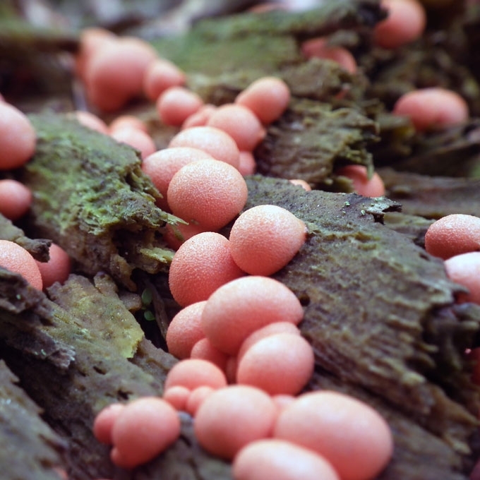 Plazmodis rausvai rožinis. Etaliai dažniausiai rutuliški, nuo žirnio iki riešuto (0,5—2 cm) didumo, jauni — oranžiškai rožiniai, subrendę — gelsvai rudi, gelsvai pilki, apaugę rausvai rudomis karputėmis, vidinė masė skysta, minkšta, rožinės spalvos, sena - sukietėja, papilkėja, perauga į sporas. Sporos 5-7 pm.