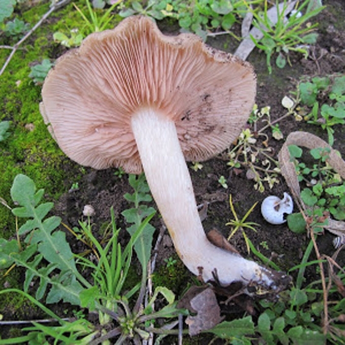 Būdingi požymiai: gana trapūs vaisiakūniai, lakšteliai rausvai rudi, auga drėgnose, žolėtose vietose, dilgėlynuose.