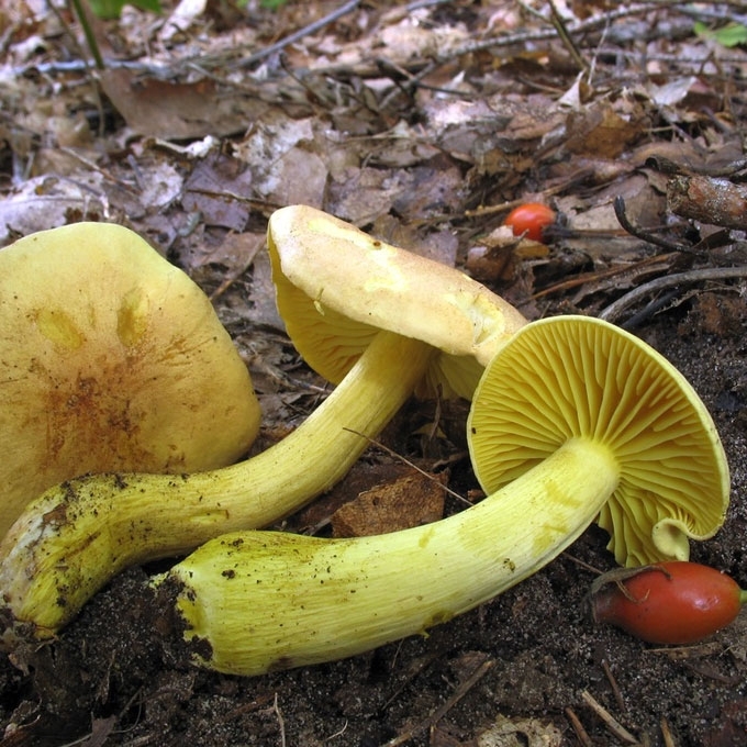 Būdingi požymiai: žalsvai geltonos spalvos grybas, trama geltona, nemalonaus kvapo ir skonio.