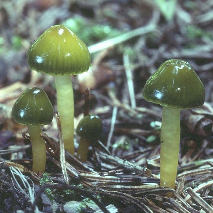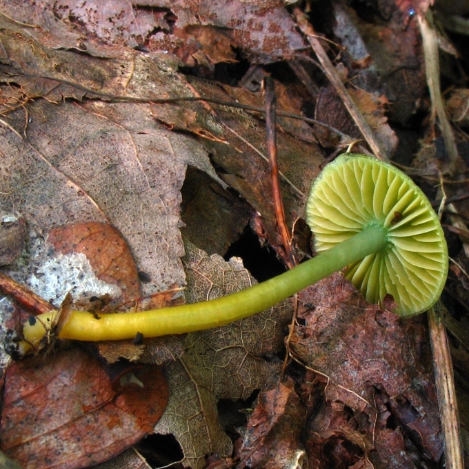 Būdingi požymiai: kepurėlė, lakšteliai, kotas ir trama žalios spalvos, subrendusių grybų - žalsvai geltoni.