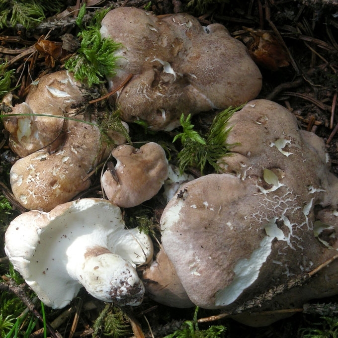 Būdingi požymiai: sengirių (eglynų, pušynų) grybas, pilkšvai gelsvi vaisiakūniai, po kelis suaugę kotais.