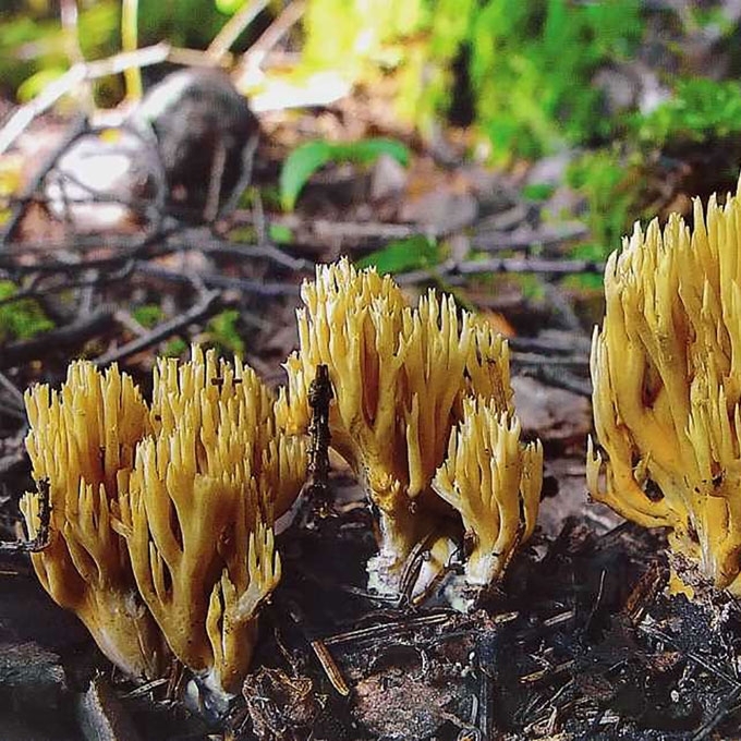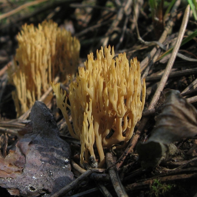 Pagr. požymiai: Vaisiakūniai geltonai rudi, viršūnėlės smailiai šakotos