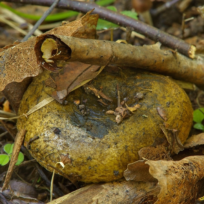 Būdingi požymiai: vaisiakūniai nešvariai žaliai rudos spalvos.