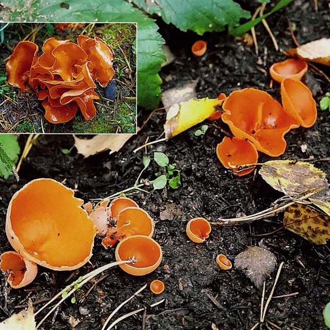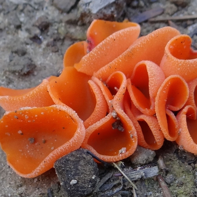 Pagr. požymiai: Oranžiniai vaisiakūniai, be koto, auga grupėmis