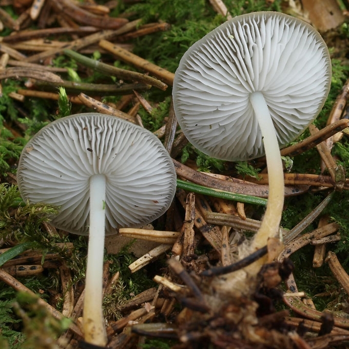 Smulkūs grybai. Kepurėlė 1-2 cm skersmens, retai didesnė (3-4 cm), apvali, matinė, kartais raukšlėta, plona, pilkai ruda, rausvai ruda, odiškai ruda. Lakšteliai pilki, siauri, tankūs, priaugtiniai. Kotas ilgas, apie 10 cm virš žemės ir 3-7 cm būna žemėje, paklotėje, ant kankorėžio arba peraugęs jį.